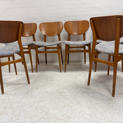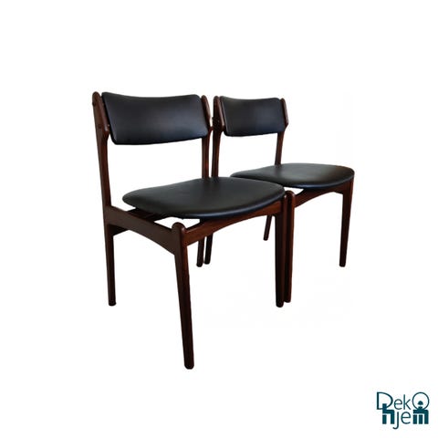 Flotte retro spisebordsstole i teak med svævende sæde og nyt nappa på sæder og ryg, designet af Erik Buch, i alt 2 stk. Der er enkelte hak. Fra 1960’erne.