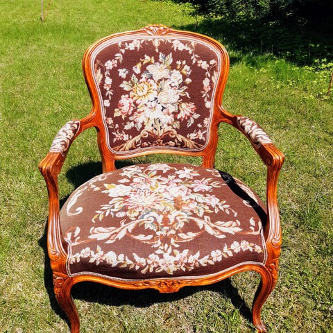 ROKOKOSTOL - håndbroderet betræk. Det hele i fin stand