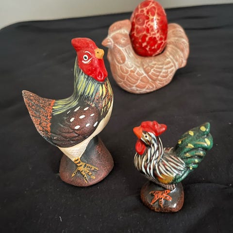 Frække snakke Høns, 3 sjove iPhone snakkende høns, den ene med plads til fyrfadslys. Gad vide om de snakker om salget af Irma motiv ting.
