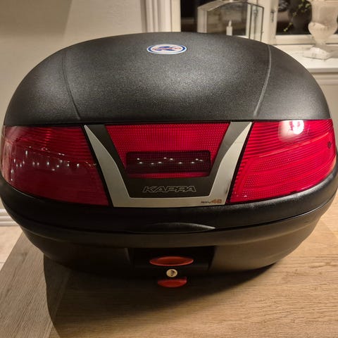 Topbox Kappa til gammel system 500kr. 2 stk Kappa sidetasker med Windrack . Kappa K35 498kr. Givi med monterings plade og ryglæn.lille 298kr. Og stor 398kr. Givi taskesæt med 3 nøgler 1250kr for 2. På 45l. 2 stk på 40 l. 1200kr. Givi V47 N