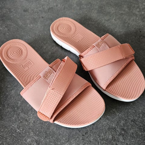 Lækre, helt nye og ubrugte sandaler fra FITFLOP, model Iqushion Adjustable Buckle Slides. Surfer girl fitflops, classic beige, str. 39 med regulerbar rem. Fitflop Iqushion Comfort Technology for bedste komfort for foden hele dagen. Læder i farven snake. Helt nye og ubrugte. Nypris kr. 600,-