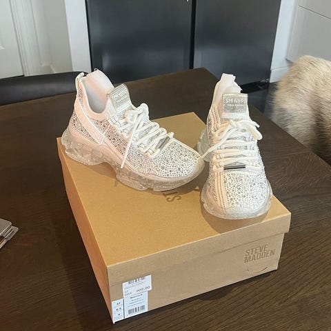 Nye fede grå sneakers i str 37 fra Steve Madden. De er grå med sten. Super fine. Meget komfortable at have på. Jeg købte 2 par af denne model fordi jeg var bange for de blev slidt hurtigt, men de holder mega godt og derfor sælger jeg det ene par. Nypris var 999kr.