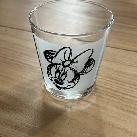 Fine glas med originale tegnede motiver af Anders And og Andersine på frosted baggrund.