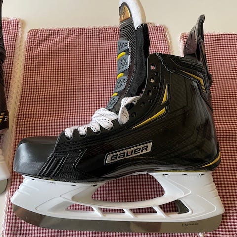 Sælger mine Bauer vapor skøjter da jeg er gået tilbage til mine supreme modeller. De er brugt 2 gange på is (ingen kamp) kun til offentlig skøjteløb. Klingerne er ny slibet og der er ikke mistet noget af højden på dem. Str 6 og fit 3 (str 40,5 i sko). Jeg bruger selv str 42 i sko. Disse skøjter er top modellen og er absolut noget af det bedste man kan få. Prisen er derfor også sat herefter. Har æsken men ikke kvitteringen.