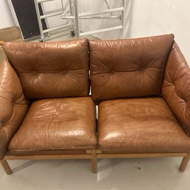 Cool design og lækker sofa. Samles uden brug af skruer, men ved at læderremmene løsnes.