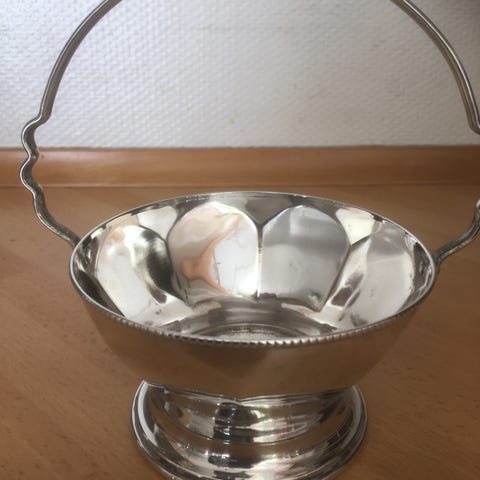 Rigtig gammel flettet hankekurv med bund af metalflet.