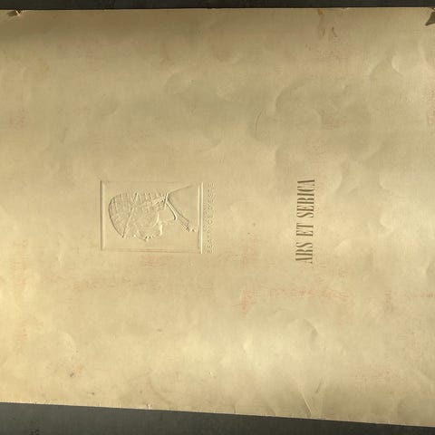 Bogen er på omslagets inderste side forsynet med et rødt/sort mærkat, Ex Liberis: Tre kinesiske skrifttegn og nederst navnet Brøndal, dvs. at bogen har tilhørt professor dr. phil. Viggo Brøndal (1937?) og i bogen ligger en fin lille klar pergamentlignende film med en håndtegnet illustration i sort blæk, forestillende redaktør Egly på Jylland’s Redaktion kontor, og Egly ses ved at smide en uartig lille dreng i papirkurven (Brøndal?). Kalenderen på væggen i kontoret siger det er den 1. marts 1934. Tegningen er vedhæftet en lille sort håndskrevet hilsen til Egly ”fra din ven”. Et sjovt og værdifuldt minde om bogens historik.
