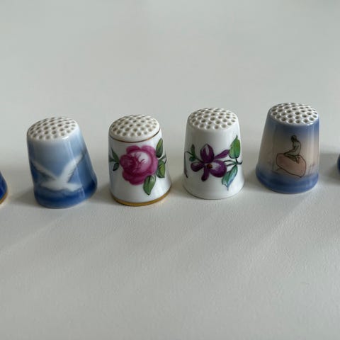 Super fint håndlavet fingerbøl fra Bing og Grøndahl i originalæske. Det som idag hedder Royal Copenhagen. Fingerbøllet fra B&G er helt intakt og har en pink rose på. Modellen hedder Rose. Måler 2,7 cm