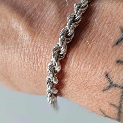 Meget fint sølvarmbånd der aldrig har været brugt. Det er Ca 18 cm langt og 4 mm bredt (målt med skydelærer)