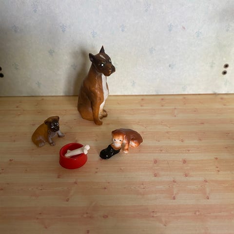 Andet, 24små hundefigurer til dukkehus eller barbie, 24 forskellige ældre hundefigurer af flere racer fra små til dukke hus til lidt større til barbie eller andet alle i fin stand og ældre ca 24 stk i fin stand alle sælges helst samlet og hentes her eller sendes for købers regning