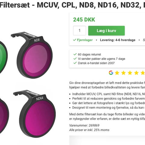 Jeg glemte nd filter kassen med nd filtrene i da jeg tog på den rejse dronen skulle bruges så jeg købte en nyt sæt i Sydafrika. Nu har jeg et sæt for meget.