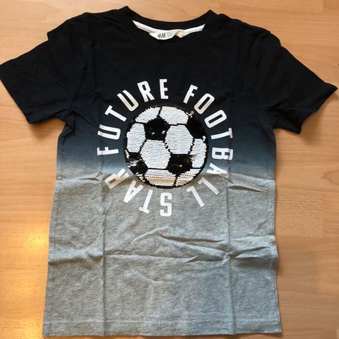 Helt ny t-shirts sælges . Den er aldrig brugt - aldrig vasket . Den er i str 122-128 . Den er fra H&M . Min søn er vokset fra den . Den sælges for 50kr