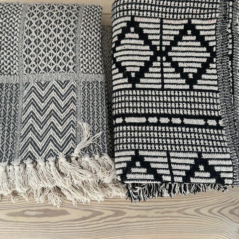 Bloomingville kraftigt tæppe / plaid i råhvid og mat sort.