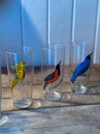 Fine sjove drikke glas med fuglemotiv. Har 8 stk