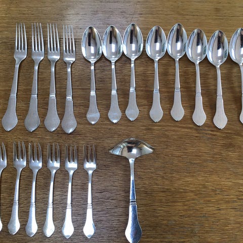 Bestik, Sølvplet, Bågø, 2 stk dessert skeer. 18,5 cm. 20 kr pr stk