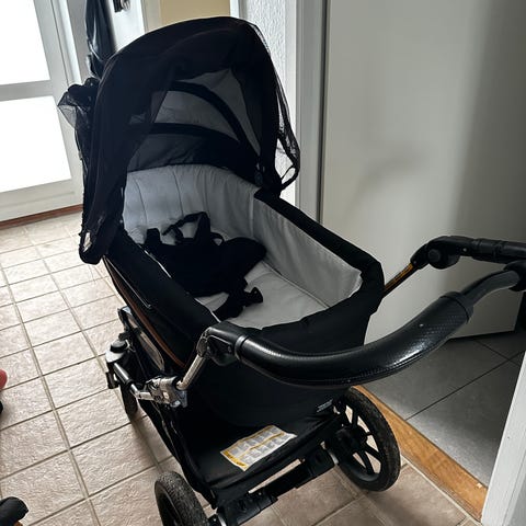 Klapvognssæde som bruges på samme stel, med udluftning i kaleche, indbygget myggenet og solsejl, ryggen kan lægges ned trinvist.