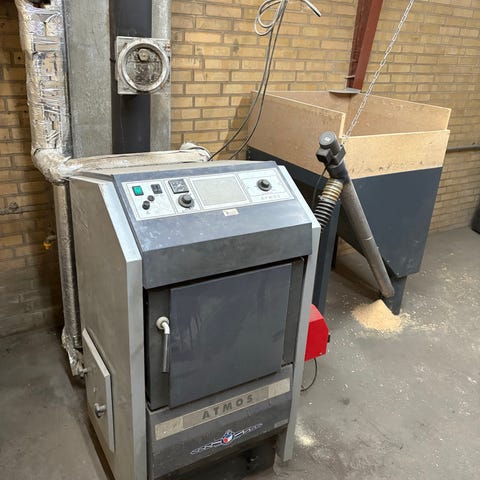 Der er Atoms gasogen kedel, med Multi 22 (18Kw) pillefyr med styring, træpille snegel, plus de løse ting.