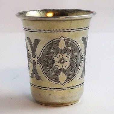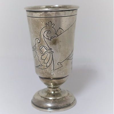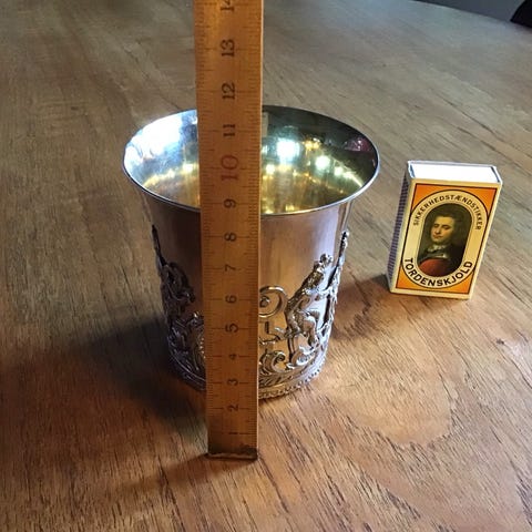 6cm højt og ø: 5cm for oven og 3,5cm for neden. Se stempel på foto