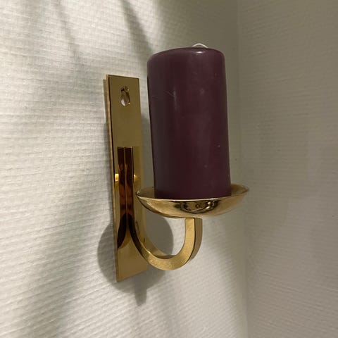 Smuk væg lysestage. Kan bruges både til bloklys og alm. lys.