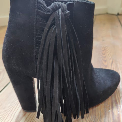 Størrelse 38,5. Smal i pasformen og lidt slitage på tåspidserne, ellers næsten som nye. Skal forsåles.