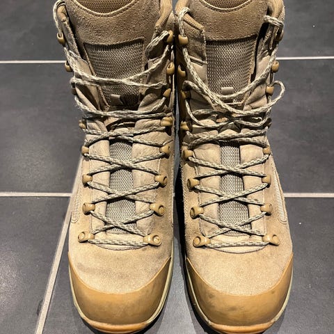 En rigtig god vandre/outdoor støvle. Paret er sorte og ligger bare og samler støv. Det er den nye langskaftet model med de nye snører spænder. En super lækker støvle, der bliver brugt i bl.a. forsvaret
