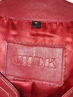 Damejakke i rød læder, mrk. CHDK, Danish Design by Hanne Berggren, med lynlåse foran og bagpå. Høj kvalitets blød læder. Har brugsspor.