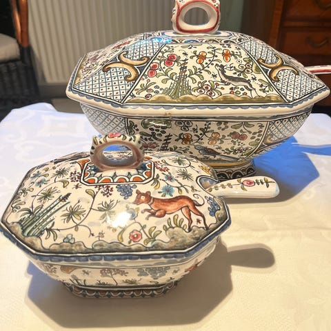 Porcelæn, Terrin, Natures Mortes Decors de Paris, Terrin med dekoration af fugle