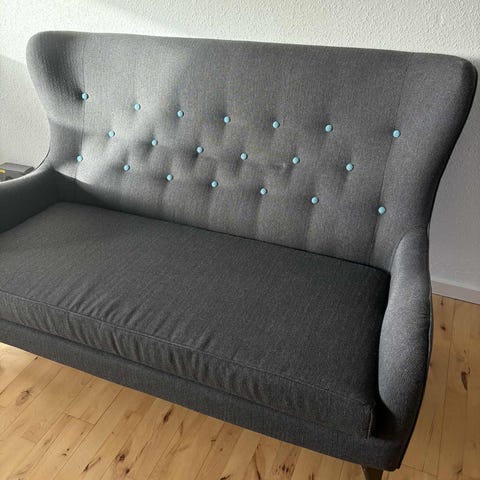 Fin gammel sofa fra mine bedsteforældre. Betræk i perfekt stand, men lidt brugte fjedre, når man sætter sig i den. Sidde dybde 53 cm