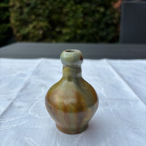 TV: Mini-vase, almue-stil/1 hank, lysebrun/hvide mønstre
