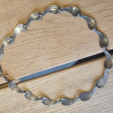 Unikt sæt af Herman Siersbøl. Halskæde 40 cm. Armbånd 18 cm og tilhørende broche. Utrolig fin stand, brugt få gange. Fra 60’erne.