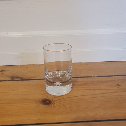 Glas, Rosa snaps- eller shotglas, 2 små rosa / Laksefarvede snapsglas eller shotglas. Højde 6cm og diameter 3,2cm og rummer lidt mere end 2 cl.