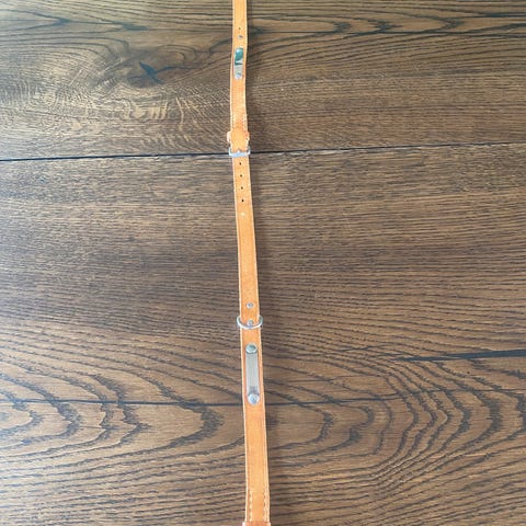 Fint brunt elastisk bælte med flot spænde med motiv af "mænd" eller soldater? Indstilleligt med ca. 75 cm langt og ca. 2,5 cm bredt.