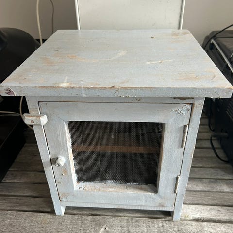 Ældre charmende og hyggeligt fadbur - trænger til en kærlig hånd - lad evt. patinaen stå og udskift hyldepapir og nettet. eller mal i lige den farve du ønsker. Perfekt til butik eller kolonihaven. Kun afhentning Aarhus n