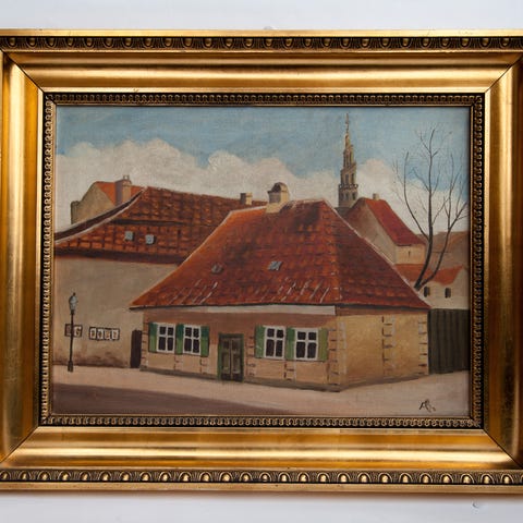 Maleriet måler med ramme 37 x 46 cm.