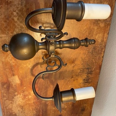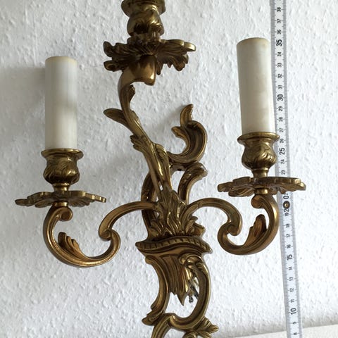 Fin enarmet messing lampe fra 1920'erne. 21 cm høj.