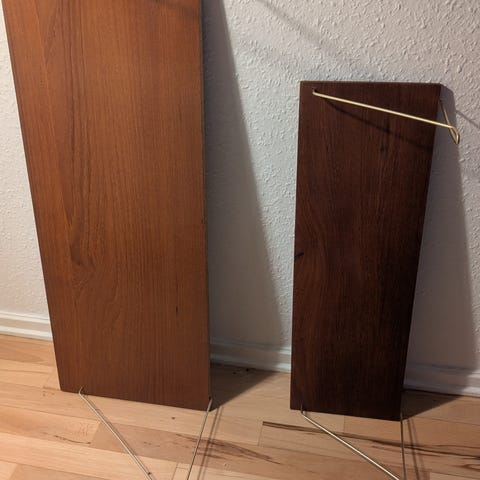Hylder i teak. Hører formentligt til en reol system. Hente dem allesammen for 500kr
