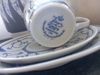 Porcelæn, 5 kagetallerkner og 3 mindre kagetallerkener, Jäger, “Musselmalet”. De 2 største har mærket Jäger Ø 17. De 2små Samlet pris 100kr.