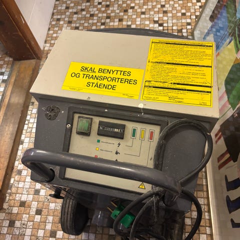 Maskinen har været pakket ud men har aldrig kørt, så timetælleren står naturligvis på nul.