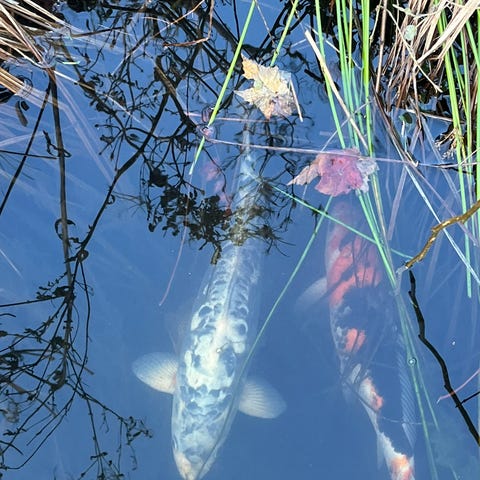 Det er et ret stor bassin og de er ikke håndtamme, men de kommer hen når der fodres. Ved ikke hvilke type det er. Men nogle er blevet rigtig store.