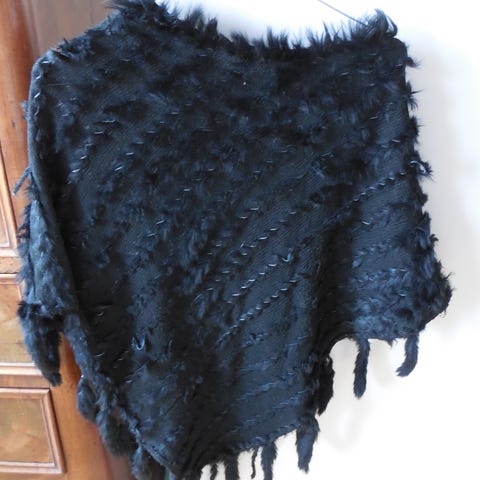 Poncho, Poncho/slag, ?, str. One size, Sort, Akryl?, God men brugt, Stor poncho med høj hals i strik’…… retstrikning. Tror, det er akryl.
