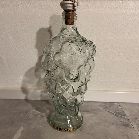 Virkelig flot og dekorativ gammel grøn vinflaske / vase med den flotteste patina. Er på hele 5 liter. Har søgt på nettet, den kan (måske) være tilbage fra 1940'erne eller 1950'erne. Spalletti Casa fondata nel 1912, Chianti Spalletti Rufina. Sæt den evt sammen med en flot plante og en lanterne/hurricane. Kan også være en flot dekoration på en restaurant eller vinforretning. Højde 49 cm. Diameter i bunden 14 cm. Diameter i halsen 4 cm. Sød vært/værtindegave. Pynt den med flotte grene, pampas, fjer, lysgren eller lignende.