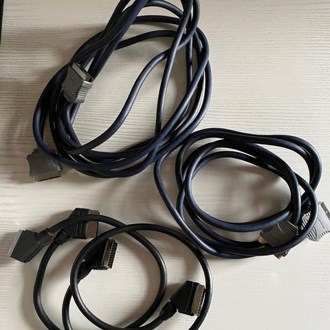 Scartkabel til VHS eller ældre DVD afspillere.