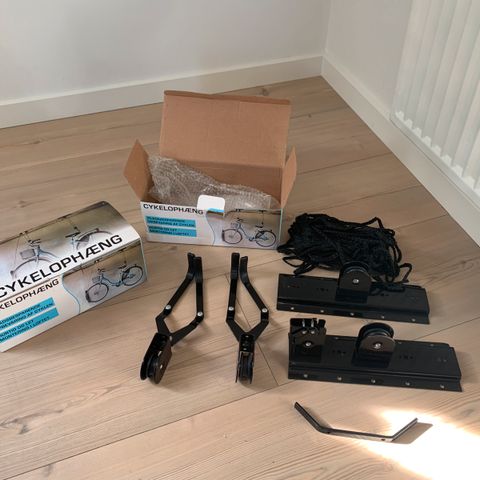 Cykel ophæng til Montering.på krog 4 cykler Max 60 kg har væretbrugt få gange ca 5 gange