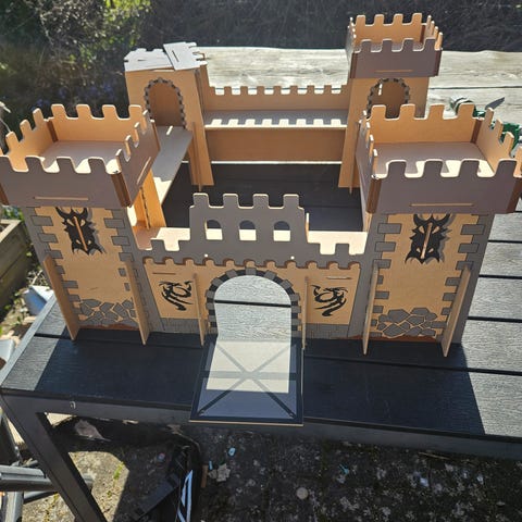 Knights Wooden Castle borg, 3 stk med figurer