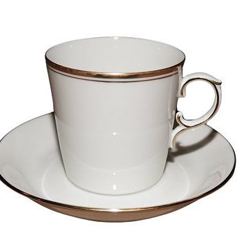Kopper, Den Kgl. Porcelænsfabrik, 2 Elegante antikke hvide kongelige porcelænskopper med guldkant.