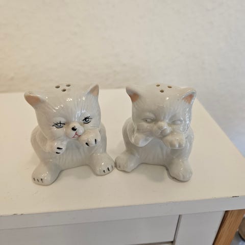 Porcelæn, Salt- og pebersæt, Sjovt og farverigt salt- og pebersæt udformet som katte.