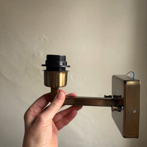 Blå lampetter 2 stk til evt gang på disse er bagbeklædning i hvid plast til at bore på væg dybde denne 4 cm og med fatning diameter 12 cm. grå metal plade rund dia 17 cm mod væg og med blåt plastik på 14 cm diameter, blå plastik sidder med sølvpinde 3,5 cm ud fra grå plade og hvor pærerne sidder så man kan se dem. Pæne og velholdte.