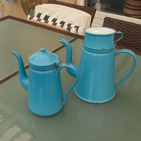 4 super skønne antikke og dekorative Madame Blå - Rød emalje kande - kaffekande - kedel - The kande mm