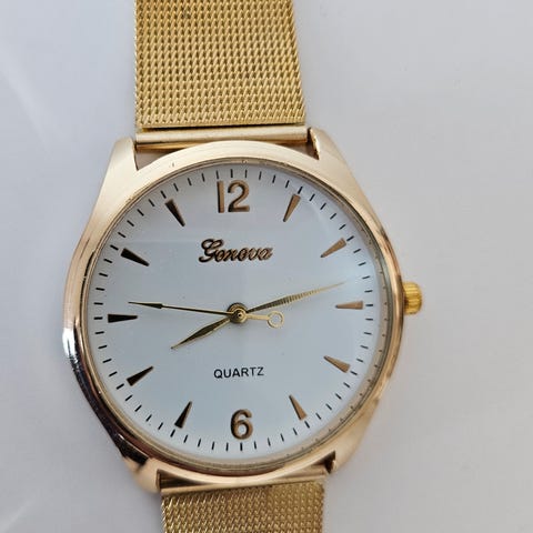 Sælger et stilrent armbåndsur fra Geneva med quartz-urværk (Japan Movt). Uret har en flot metalrem og klassisk udtryk, perfekt til både hverdagsbrug og mere formelle lejligheder.