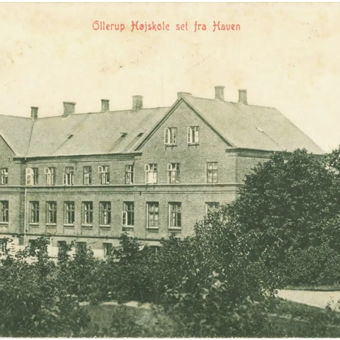 Coloreret postkort med Lollands Højskole i Søllested. Fra omkring 1909.